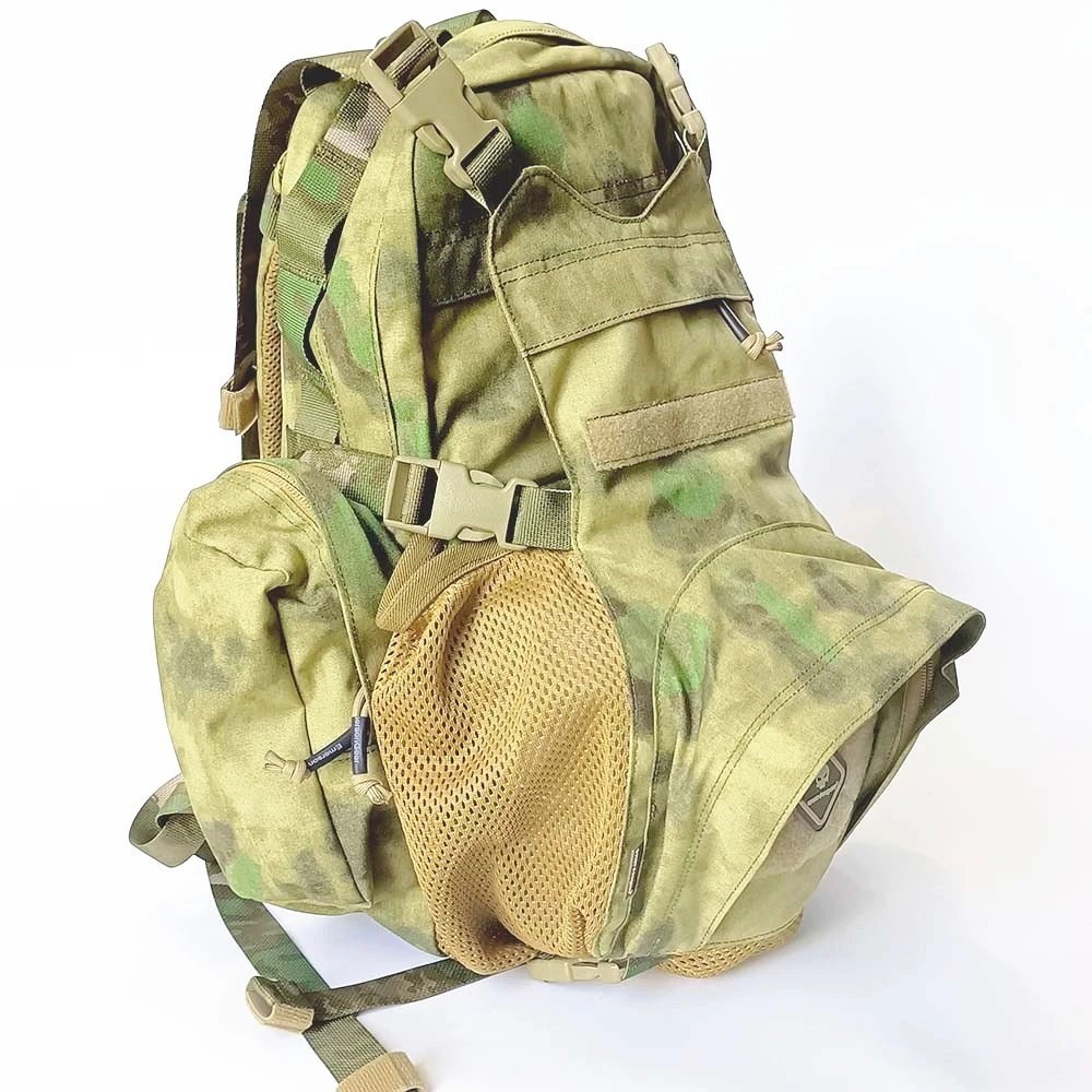 Отличительной чертой данного рюкзака является наличие объемного сетчатого кармана, для размещения больших вещей снаружи рюкзака, идеально подходит для каски, теплых вещей, утягивается в 6 точках. 2 боковых утилитарных подсумка, 2 кармана во внешней панели рюкзака. 2 способа переноски - на спине посредством крепления MOLLE и с помощью лямок, который можно снять.